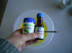 3.クエン酸(酸味料)とオレンジエッセンスを混ぜる。 |