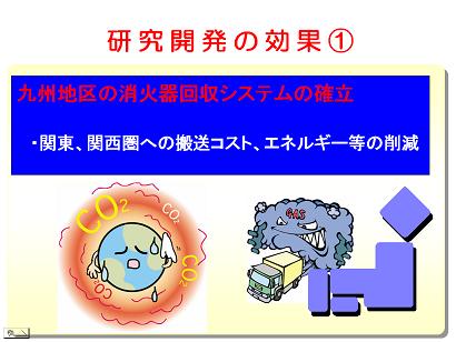 @九州地区の消火器回収システムを確立することで、廃棄リサイクル施設のある関東・関西圏への搬送コスト、搬送エネルギーの削減になります。